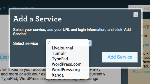 (If you would like to connect Plinky with a blogging service that isn’t currently supported, you can start a free blog at WordPress.com in seconds. You can even import the content from your old blog to your new blog if you like.)